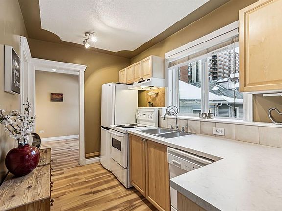 Attractive Pricing & Located in Trendy Mission! Super Cute TOP-FLOOR Condo with LOW Condo-Fees(which include heat/water and more) or as low-maintenance investment property, just steps away from Calgary’s Most Vibrant Neighbourhoods. Trendy Restaurants and Walkability as an entry into Mission! Take a quick RUN on the River, Bike-Ride to work on the nearby bike-path system, or walk over to STAMPEDE PARK for an Event or Concert. This OPEN-CONCEPT 355 sqft Condo enjoys BRAND NEW Luxury Vinyl Flooring throughout the single level apartment. Tasteful Kitchen with Maple Accented Cabinetry & Fresh NEW Counters. ENJOY the West Natural Light through the Bedroom and Living Space and Private IN-UNIT WASHER comes in handy. (Tucked away in the closet) Spacious Bedroom can fit a Double or Queen Sized Bed, rare for a CONDO of this size. Clean & Tidy 4 pce Bathroom with Tile floors, sets you up for Just enough space for a busy working professional who doesn’t need too much space. Affordable for First-Time Homebuyers (Cheaper-than-Rent). Quick access to downtown, Located in SUPER Vibrant MISSION Walkable/Bikeable to most amenities nearby with TRANSIT, SHOPPING, RESTAURANTS, Neighbourhood/Chain COFFEE SHOPPES, places to soak on the RIVERS’ edge or walk to the NEW EVENT centre for Stampede Activities. Proximity to 17th AVE or just a few minutes to the downtown office! Large Secured Storage in the lowest level for Seasonal Items & communal Card-op Laundry in lower level for the building. Check out this Urban Living Crash Pad as a downtown base for an Active Lifestyle!