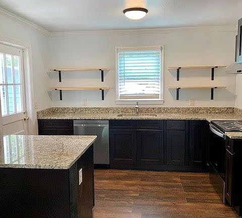 House features a garage/workshop, ceiling fans throughout, big fenced in backyard, hardwood floors (no carpet), newer windows, newer HVAC, stainless steel appliances, granite countertops, washer/dryer, spacious porch and tons of natural light. The kitchen has been completely renovated to open up the floor plan.