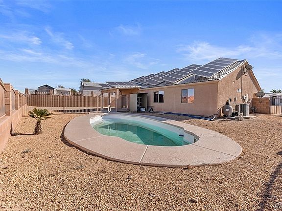 Introducing a beautifully maintained property located at 2417 E Midgo, Fort Mohave, Arizona 86426. This stunning home, built in 2004, offers a spacious living area of 1389 square feet, thoughtfully designed with an open concept for a modern lifestyle. It boasts 3 generously sized bedrooms and 2 full bathrooms, perfect for a growing family or for hosting guests.  Brand new water heater and new whole house water softener   The home is situated on an expansive approx lot size of 10454, providing ample outdoor space. The fully fenced backyard ensures privacy and safety. Adding to the charm and appeal of this property is a sparkling pool, perfect for cooling off during the hot Arizona summers.  The home features a 2-car garage, delivering additional storage and parking convenience. Solar panels are a significant feature of this home, an investment in sustainable living that allows for significant savings on electricity bills.   The interior of the house is kept super clean, showcasing the pride of ownership. This home is ready to welcome its new owners who value comfort and style.   Experience the best of Arizona living at this Fort Mohave property!