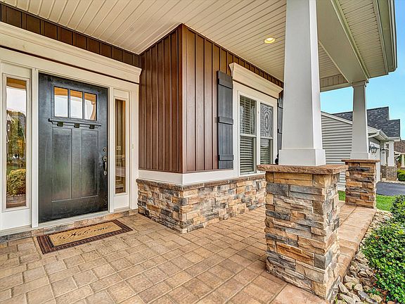 Simplify life in style with this customized one-level-living patio home in Russlen Farms! The open concept kitchen and great room are perfect for everyday life and entertaining, with both bar seating and an island providing ample prep space. Relax in the spacious screened-in porch or step out to the extended rear patio. The primary ensuite offers a tray ceiling, electricfireplace for cozy evenings, walk-in closet, and a beautifully tiled walk-in shower with a modern glass enclosure. The hall bath features a deep tub--ideal for unwinding. A temperature - controlled garage with an epoxy-coated floor and workshop area provides extra conditioned space for projects and tinkering. Lightly lived in and move-in ready - with hardwood floors throughout, this customized home blends comfort, convenience, and care in every detail.