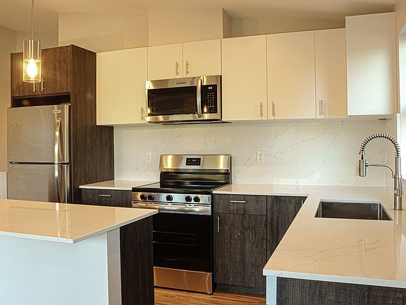 Beautiful new construction 3 bedroom 2 bathroom duplex apartment with deck views of Port Washington Narrows featuring modern finishes. Quiet end of cul-de-sac setting. Large bright open floorplan featuring vaulted ceilings with high efficiency heat pump - huge monthly savings. All new stainless steel appliances with quartz countertops. New washer/dryer. Large single car garage and extra side parking. Level 2 EV charging capable in garage. Cats/Dogs are permitted upon approval. Discounted rent and deposit for active military!