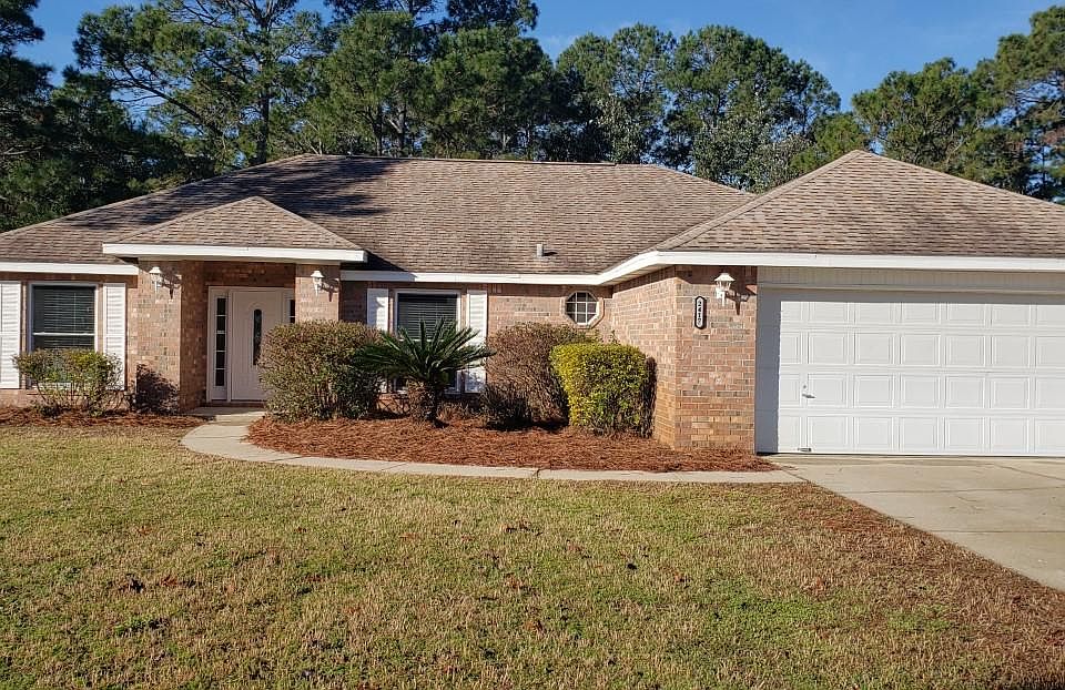 MOVE IN READY/HOLLEY BY THE SEA !This spacious all brick 3/2 offers a split floor plan with new paint and carpet. Large family room with fireplace, vaulted ceiling,tile flooring, plant ledges ,and new french doors leading to the huge fenced in backyard. Enjoy preparing meals in the upgraded, eat in kitchen complete with island, tiled backsplash, an abundance of maple cabinetry, and beautiful tiled counter tops. Flex space off of the front entry would make a great office space or formal dining area. The oversized master suite boasts dual vanities,, soaking tub, seperate shower, and a large walk in closet. Enjoy family bbqs on the large back patio leading to the all fenced in back yard.