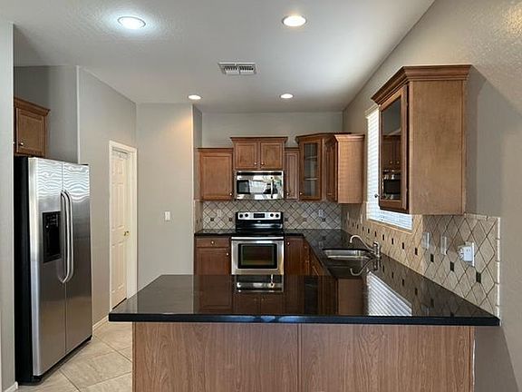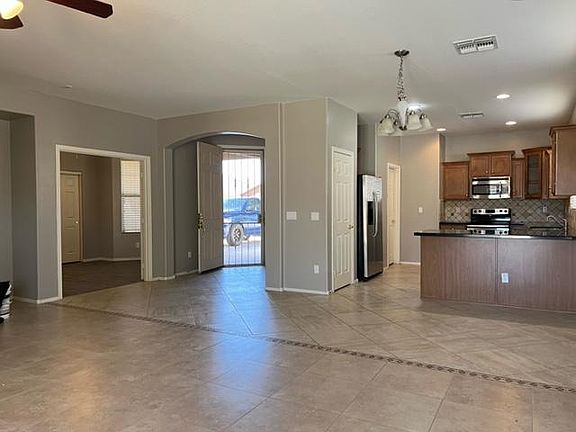 - A single-level house with metal security door and sun screens. - Three-car split garage for extra storage. - Quiet street and neighbors on south of Baseline Road, close to South Mountain. - Single-level home WITH OPEN FLOOR PLAN with 3 bedrooms and an office. - 20 x 20 tiles in all traffic areas and bathrooms. - New waterproof plank in all bedrooms and office - New custom paint in all interior walls. - Ceiling fans in every room for saving utility. - Luxury features including granite counters, backsplash wall tile. - GE stainless APPLIANCES (dishwasher, range/stove, refrigerator). Washer and dryer are included. - Huge south facing rear backyard. - Next to schools, parks and close to shopping centers (in Laveen, Phoenix). Last month's rent due at signing.