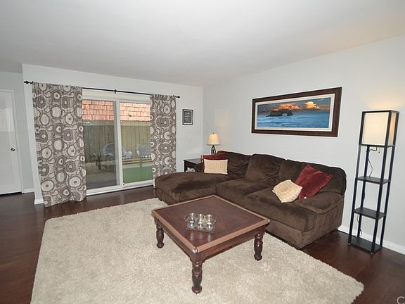 Beautiful updated front unit beach city condo. Features updated kitchen with recessed lighting that opens to large dining area. Enjoy your dining area that overlooks the living room providing a great place to entertain guests. Spacious Master Bdrm painted in lovely soft colors and recently updated en suite bathroom with a barn door. Condo has a wonderful layout, newer windows, one level with laminate flooring in living area and bedrooms no carpet in this condo! Enjoy Barbecues with friends and family on your own private tiled patio. Detached one car garage w/storage space. Garage ownership is on seniority and complex has Two, 2 car garages that buyer would be 2nd in line if one of those units sold. FRONT LANDSCAPING is now being worked on. Small 4 Unit Complex with LOW HOA's $160.00. HOA pays gas, water, trash, gardner & new washer/dryer that only 3 owners use.