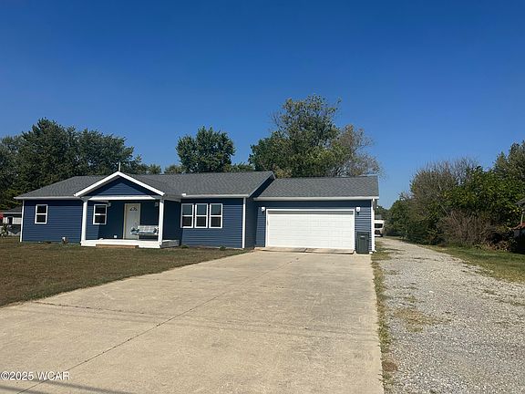 Newer construction in Shawnee SD (2023). Home offers 3 bedrooms, 2 full baths, open floor plan, rear deck and covered front porch! Gas heat and central air. House sits on just shy of an acre lot with an extra large detached 4-car garage.