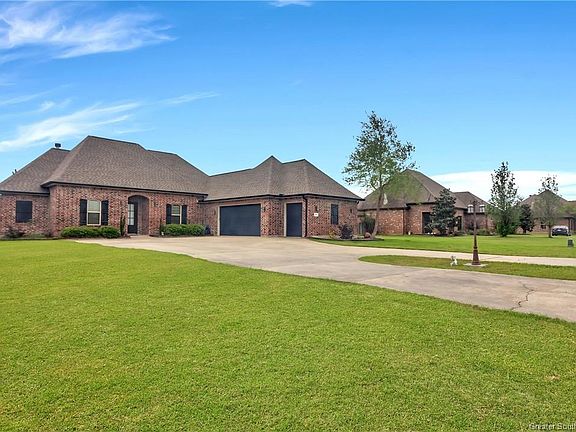 This stunning Moss Bluff home, with 4 bedrooms and 3 full bathrooms, offers a perfect blend of luxury and functionality. As you step inside, you'll immediately be welcomed by an open floor plan highlighted by a cozy fireplace that offers both wood-burning and gas options plus a beautiful brick archway defining the space. The kitchen boasts granite counters and a commercial-size fridge ideal for hosting guests. For added convenience, there is a gas valve behind the stove, giving you the flexibility to switch to gas cooking if preferred. A separate room, enclosed with elegant French doors, offers versatility as a formal dining area, home office, or study, allowing you to customize the space to suit your lifestyle. The primary suite offers easy access to the laundry room for added convenience. There are two 50-gallon water heaters! The attic is fully decked for extra storage space, keeping your home organized and clutter-free. Outside, enjoy the sparkling, gunite, saltwater, heated pool and jacuzzi. The pool features a sun shelf and cooling fountains. But that's not all...you'll also have an outdoor kitchen with granite counters, fenced yard, and a 12 x 20 wood shed on a slab. There is a 500-gallon in-ground propane tank fueling the pool/jacuzzi heater, the propane fireplace log burner, and the gas valve behind the stove that could be used to switch to a gas stove. This is the perfect home for entertaining! With its versatile layout and exceptional outdoor amenities, this home is ready to offer you the best of both comfort and style. Flood Zone X makes this home even more appealing!! This home is also equipped with an alarm system and it's wired for sound both inside and outside. Enjoy the convenience of an attached 2-car garage with an additional third bay for a golf-cart, riding mower, or workshop. Don't miss your chance to make this spectacular home your own! All measurements are +/-.