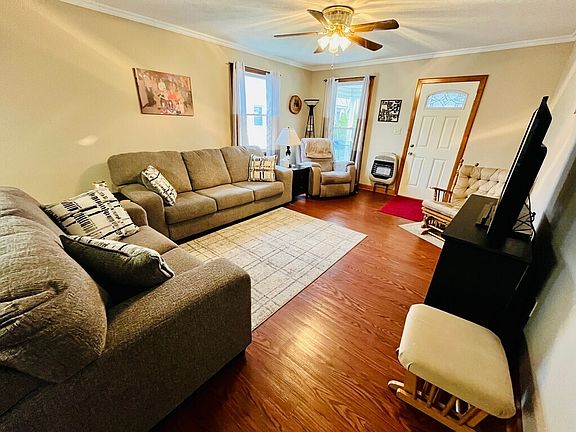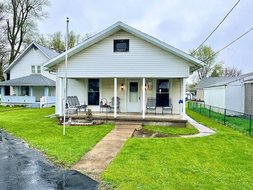 This 2 bedroom gem is a great find with perks. Spacious and open living room and dining area. Kitchen area offers plenty of cabinet and counter space. Both bedrooms are good size with spacious closets and storage. Main bathroom recently updated with walk in shower. Nice laundry area/mudroom in the back. Outside amenities include off street parking in the front, a charming, covered porch, a newly built open deck in the back, and garden shed. Additionally, there is a large 2 car garage with automatic doors, attic storage, and a nice gravel lot. New furnace was just installed on 4-5-24. Home being sold AS IS.