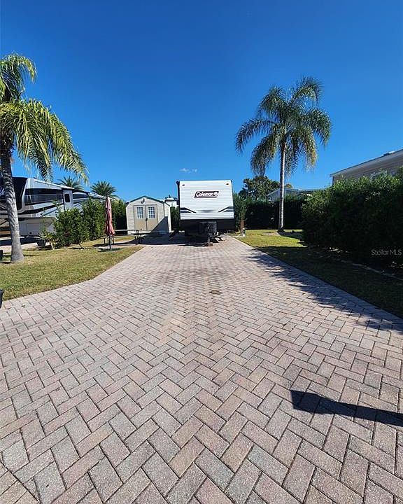 This spacious RV lot (#302) is tucked away on a quiet back street in the highly sought-after Elite Resorts at Citrus Valley. The property features expanded paver areas perfect for outdoor dining or entertaining, and a lush wall of privacy shrubs along the side and back that creates a peaceful, secluded atmosphere. A 10' x 12' storage shed is included for added convenience. There is ample room to customize the space and create your own personal piece of paradise. The association welcomes RVs, sheds, Park Models with porches, and gazebos, offering flexibility for a variety of uses. Elite Resorts at Citrus Valley is a well-maintained, high-quality community located just 12 miles from Disney and 13 miles from charming downtown Clermont, known for its weekly farmers markets, food truck events, and lively local activities. The resort also offers two bathhouses, laundry facilities, social events, and entertainment. This property allows short-term rentals, giving you the option to enjoy it part-time and rent it out when you're away — or make it your full-time Florida retreat.