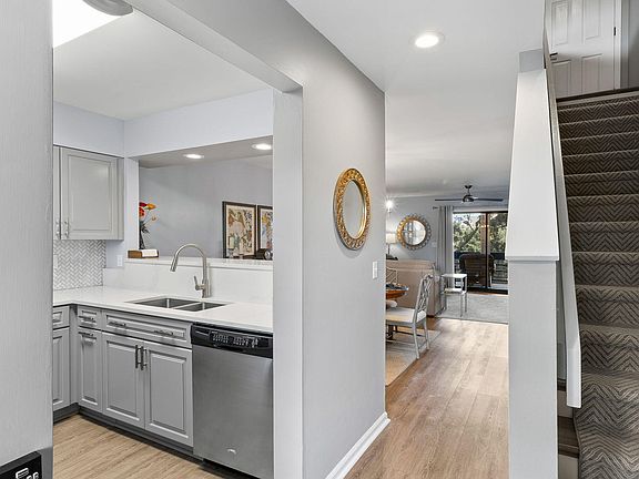 This two bedroom Racquet Club townhome is absolute perfection! It is fabulously renovated and impeccably maintained with smooth ceilings, recessed lighting, Luxury Vinyl Plank floors throughout, and custom lighting and fans. The kitchen has been updated with stainless steel appliances, white Silestone Calacatta Gold Quartz countertops and bar, marble herringbone backsplash, new cabinetry and hardware, and stainless steel sink with modern fixture. The first floor is very spacious with an open Dining and Living area along with a powder room with new vanity and lighting. The Racquet Club townhome floor plans have superior outdoor living space and incredible views. The first floor living space has a generously-sized screened porch overlooking the marsh as well as spectacular ancient Live Oaktrees. Upstairs there is the primary bedroom as well as the guest bedroom, both with tall vaulted ceilings, as well as their own en suite, renovated bathrooms. Both bedrooms also have their own private, spacious porches and both with views. The primary bedroom has dual closets and the primary bathroom has a new vanity with marble countertops and a white subway tiled shower with glass enclosure. From the primary bedroom porch, the views extend past the marsh and Live Oaks to Bohicket Creek. The guest bedroom also has dual closets as well as a bathroom with new vanity with marble countertops, tub shower, and beadboard trim. It has its own covered deck overlooking the lagoon views as well as the private lagoon-side pool. Racquet Club Villas have excellent amenities such as the private pool, covered parking and storage, off-street parking, and walking distance access to the tennis courts, pickleball courts, Lakehouse pools and gym, walking trails, and equestrian center. This is a prime location and with these amenities, this townhouse would make the perfect full-time residence, second home, or rental property. Furnishings are negotiable.