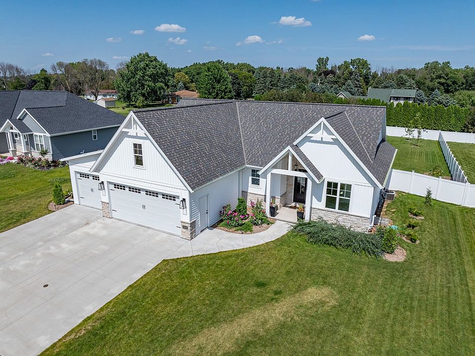 Stunning open concept ranch home in sought after West De Pere neighborhood! Open concept main level features living room with gas fireplace and coffered ceiling. Kitchen showcases huge walk-in pantry and center island. Open dining area with sliding door to back yard. Primary suite has walk-in closet and bathroom with dual vanity and walk-in shower. Two more bedrooms and full bath on main level. Office space off of dining area. Lower level boasts family room, large rec room, additional bedroom and full bathroom. Convenient mud room, half bathroom, and laundry off of garage. Huge .52 acre fenced in back yard!