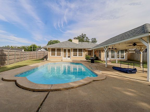 -This wonderful home features a large living room and bedrooms, walk-in closets, office, fireplace, plenty of kitchen cabinet space with granite countertops, two-car garage and a fenced backyard with a pool and large covered patio for entertaining!