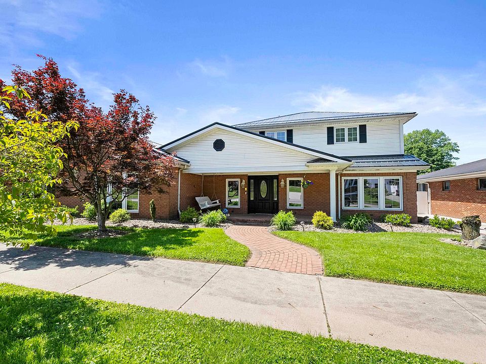 Never run out of space with this Beautiful Sprawling Brick home .Five Bedrooms and 3 and Half Baths has it all. 3 Gas log Fireplaces and Two Large Living spaces. Large open kitchen with Formal Dining room and Breakfast dining including Appliances. Two Large En suites. All Bedrooms have great size Closets , One main suite includes washer and dryer . Downstairs Finished basement with additional living space, bedroom and full bath. Large Sunroom. Covered patio with fenced in yard. Two Detached garages 22x36 and 20x20. One has finished office area. NEW ROOF 2025. Priced to sell.