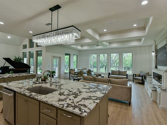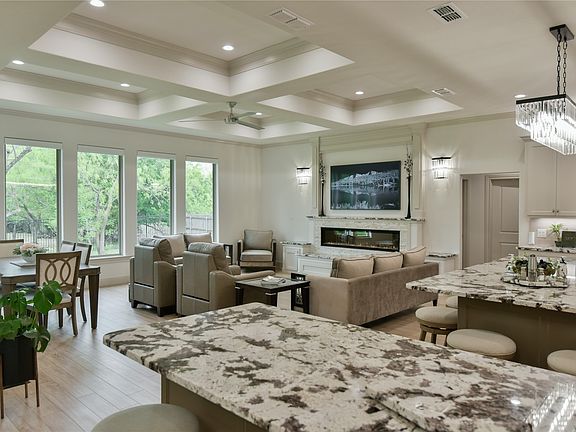 Builder's personal home and model. Owner is agent. Stunning backyard views through seven foot windows. 4 bedrooms, 3 bathrooms, large study with closet. Two islands in oversized kitchen featuring double ovens, drawer microwave, over and under counter lighting, glass chandeliers, gas cooktop, seating for nine around the two granite islands. Living area large enough to host a second dining room or back sitting area. Dining room, capable of handling most any size table, features fourteen foot vaulted ceiling and seven tier chandelier. Twin entry coat closets. Study has tic tac toe twelve foot ceiling. Master bedroom has back porch access. Master bath featuring ensuite fireplace and walk in shower with dual shower heads. Living room has six foot electric fireplace with multilevel granite hearth and mantel framed by glass coach lighting. Frame TV stays with house. Luxury Vinyl flooring throughout. Thirty foot back porch with breathtaking views through wrought iron fencing to wooded area. Feels like country living in the city. Oversized garage. Foam insulation. Sprinklers front and back. Transfer switch in garage along with electric 240V car charger plug. Finished out storage area on back porch. Pre qualification required prior to showing. When purchased, current owners require eight month lease back while they complete new house. Buyer to pay survey and title policy. Owner and listing agent must be present for all showings. Some furnishings negotiable. Price is firm. Leaseback terms are negotiable.