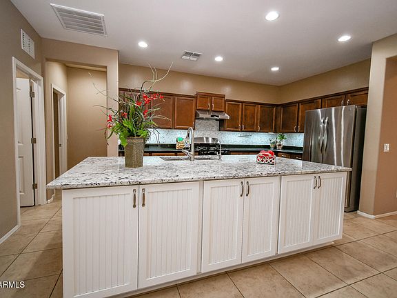 Come see this beautiful move in ready 3 bedroom/2 bath home in San Tan Heights. Home chefs will love cooking and baking in this large open kitchen with an expansive island upgraded in 2022. The stylish island features a lush granite countertop, an undermount, extra deep stainless steel sink with Kohler faucet and an R/O system. The large island adds plenty of additional cabinet storage with soft-close drawers/doors and roll out shelves.