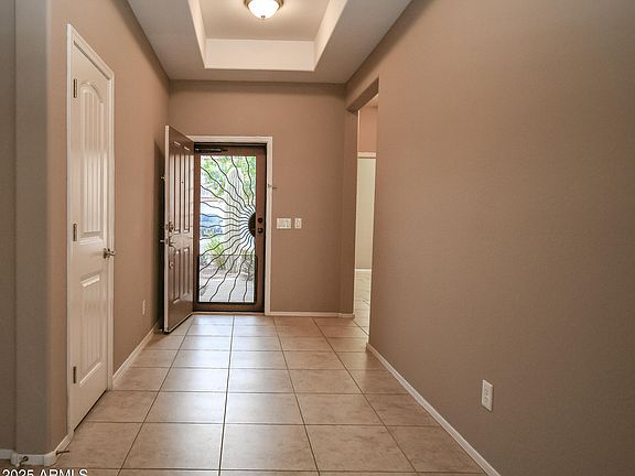 Quartz countertops and natural stone backsplash adorn the rest of the kitchen with cabinets offering addtional storage. New stainless steel appliances like a high-end range hood, GE range and GE dishwasher compliment the rest of the kitchen. You'll enjoy entertaining in the open great room which blends the living, dining and kitchen spaces seamlessly offering an inclusive gathering space for all to enjoy. 2025 updates also include new interior paint and new remote operated ceiling fans throughout. This carpet free home provides tile throughout for cooler floors in summer and ease of maintenance. Front and back yards offer desert landscaping adding to the low maintenane appeal of this home. Check out the extra clean 3 car tandem garage offering additional storage capacity and housing a soft water system and 2021 water heater. Overall, this easy living house invites you to come, settle in and make it your own home.