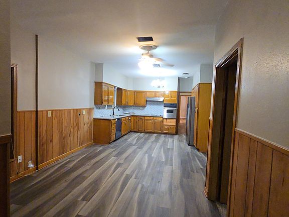Freshly painted inside and out, new carpet, new vinyl flooring, new wrap around deck. House is good size and has large kitchen, dining room and living room. Fenced in yard. Great location. Washer and dryer, as well as side by side refrigerator is available and on site for use by tenant (but is not warrantied by landlord). Looking for a good, reliable tenant that will take care of the house and pay rent on time each month. NOTE: This is for FRONT MAIN HOUSE ONLY, and the BACK house is rented by someone else and has their own entrance.