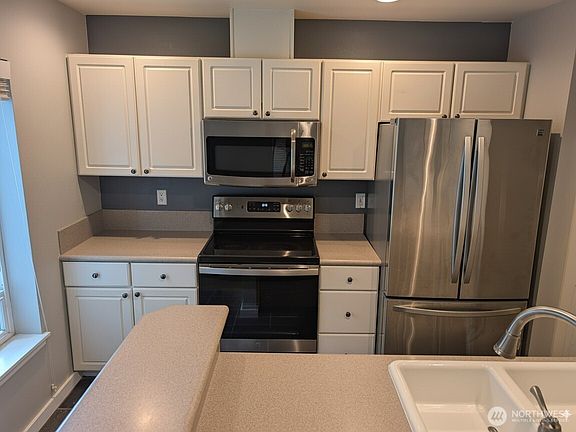 Westlake/Queen Anne condo with an easy commute to SLU, Fremont, and downtown (including Amazon, Google, and Meta offices). Open floor plan with a large living room and spacious dining room connected to a patio deck with mountain views. Primary bedroom features walk-in closet and ensuite bathroom, while the second bedroom has its own full bathroom. 8-unit condo building with self-managed HOA and no rental cap. Bamboo floors in living areas, carpet in bedrooms, slate tile in kitchen, and tile in bathrooms. Stainless Whirlpool dishwasher, Electric Range with Convection Oven, and Whirlpool washer/dryer.
