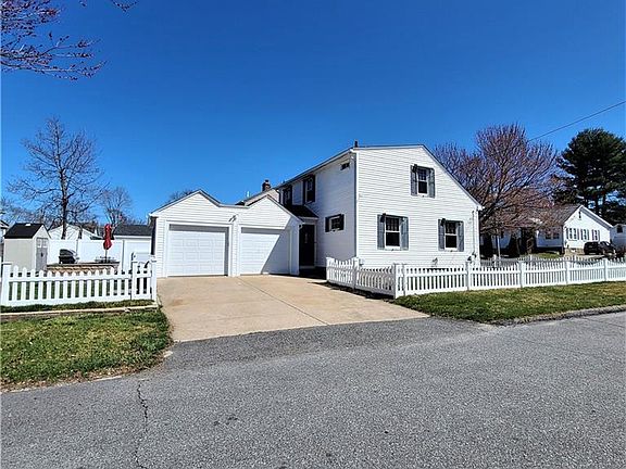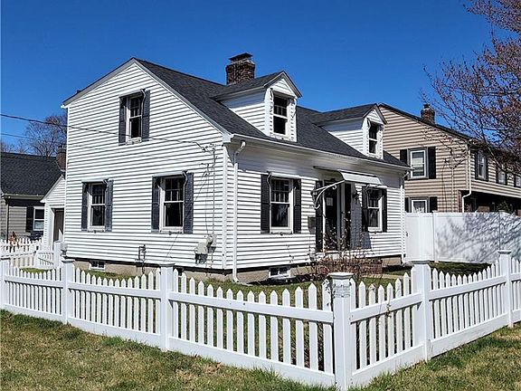 Traditional cape beautifully updated in all the right places! EIK with Tons of cabinets sporting a Modern color scheme with stainless appliances and more than ample countertops. Gather 'round the dining room table or in the large front to back living room accented with a gorgeous brick fireplace to use or decorate-let it speak for itself! Gleaming hardwoods throughout the home. Classic staircase leads up to a remodeled bath and 3 bedrooms where the Window dormers add a delightful charm. Fenced yard with an Exciting patio and grilling area to enjoy as the weather warms. Top it all off with a two car garage. House is on the corner of Farm and Cranston street and the garage and driveway are on Farm. This property and its Additional features are not to be missed!