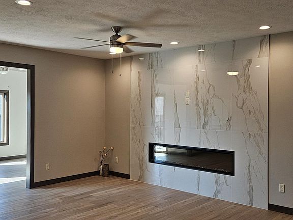 Beautiful Ranch Style Twin home by Joshua Inc. NO STEP ENTRY, 2 Bedroom, 2 Bath, 9' ceilings, Living room with an electric fireplace. Huge kitchen, Quartz counter tops, Corner Pantry, Spacious dining area with a built-in buffet. Dakota Kitchen & Bath cabinets, Door to 13 x 10 covered Deck. Primary bedroom with a trayed ceiling, (walk-in closet doubles as a storm room-Concrete walls), 3/4 bathroom-2 sinks-water closet-tiled shower. Main floor laundry. High Eff furnace, Electric water heater. 2 Stall garage, Roughed in for Garage Heater. HOA =$155/mo Lawn Mowing, snow removal, garbage, lawn fertilizer, fall sprinkler blow-out. Paid quarterly.