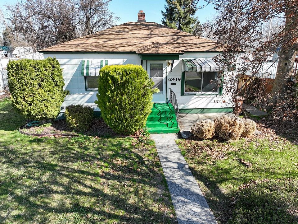 Charming home just a block from the park! This rancher style home has two bedrooms, one and a half bathrooms, gas forced-air heating and central A/C. Step inside to the comfortable living room with hardwood floors and lots of natural light. A functional kitchen with plenty of cabinets, a dishwasher, refrigerator, and electric range. Two bedrooms on the main floor with a full bathroom. Tons of storage space in the basement that has a family room, laundry room, and a bonus room that could be used as a third bedroom. Relax out back under the covered patio overlooking the spacious back yard with mature trees, a storage shed, and a single car garage with alley access. Chief Garry park is just around the corner!