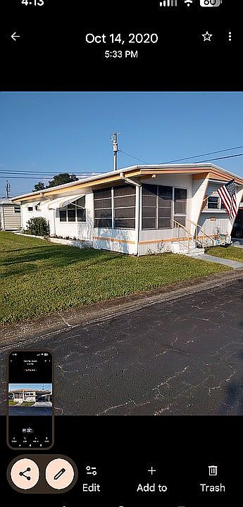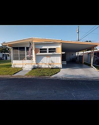 Double wide home in Clearwater Florida. Two bedroom one and a half bath. Nice carport. Nice sitting enclosed front porch. about 4 MI from Clearwater Beach. Lots of fun and games to do at the clubhouse swimming pool. Completely furnished house. Everything inside goes with it. All new appliances new stove and refrigerator, hot water tank AC and heater unit.Move right in. In a 55 and over community. lot 1418