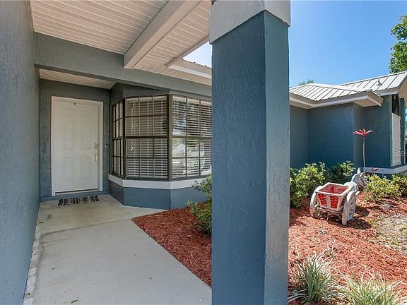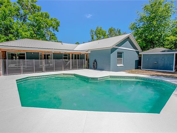 Check out this Deltona beauty! This home checks all of your boxes - ONE YEAR OLD METAL ROOF, FOUR bedrooms, a fenced in back yard, a POOL, fresh paint, a wood-burning fireplace and extra storage! Want more? This split floor plan layout offers a galley kitchen with granite countertops, stainless steel appliances and a window view perfect for overlooking the pool & backyard. Entertain guests in your living room, dining room, or covered patio area. The master bedroom is spacious and features an en-suite bathroom with dual vanity sinks, a large tiled shower, and fills with natural light from your half round window. Slider access out to pool area. This home also features indoor laundry and an updated guest bathroom. The pool gate conveys with the home along with the shed that is hooked up to electricity. Washer and dryer convey. Schedule your showing today!