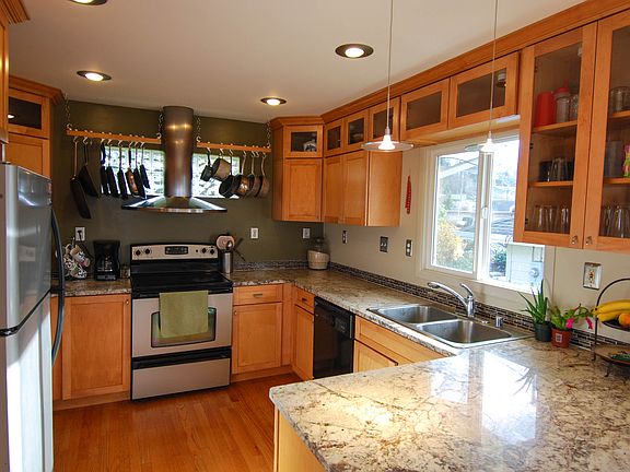 Excellent central and peaceful location in the Alabama Hill Neighborhood just minutes from the new Imax Theater, Trader Joes', Whatcom Falls, and interurban trails. Gorgeous sunsets with unobstructed city and bay views. Quality home was built by a master carpenter. Features include Maple cabinets, original hardwood floors, granite counters, and 2 fireplaces. This SW facing home is full of light. Outside features include Apple & Cherry trees, raised organic gardens, and separate 2 car garage.