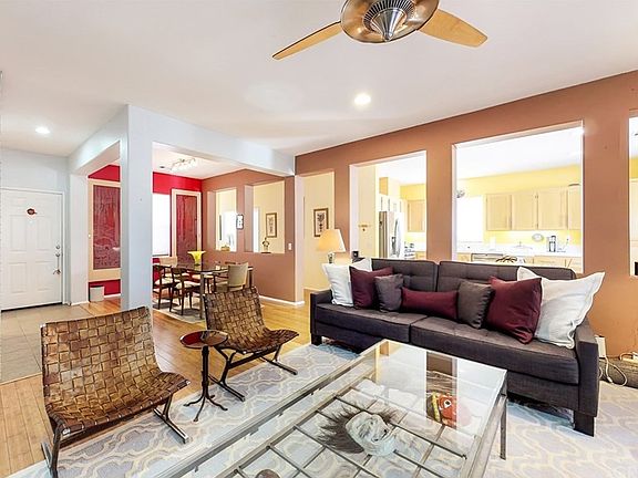 Immaculate & Pristine! Large single story floor plan with four bedrooms on great street in excellent neighborhood. The living area, dining area and kitchen all work well together in open space with lots of natural light. Hardwood flooring throughout except high-quality tile flooring in entry, kitchen and laundry room. Kitchen features stainless-steel appliances, very nice cabinetry with brushed nickel pulls and recessed lighting. Spacious Master Bedroom with En-Suite including walk-in closet. Exceptional layout of this home has a very open, spacious and inviting look and feel. Two covered patios in good-size backyard with access via upgraded slider from Master Suite. Close to all, including shopping, dining, schools and more. This home is special, you will love it! ***See Virtual Tour***