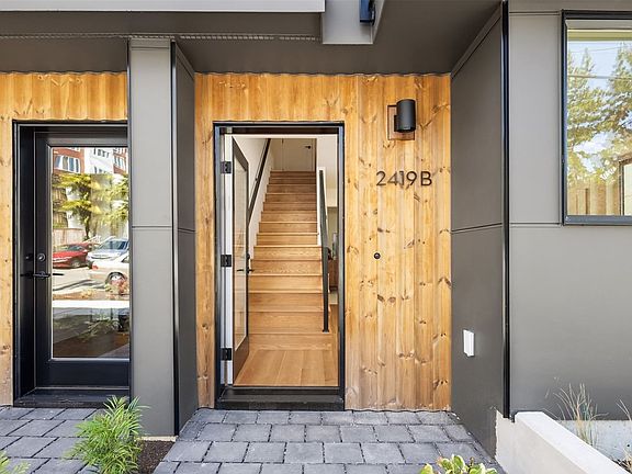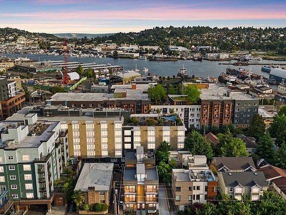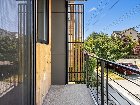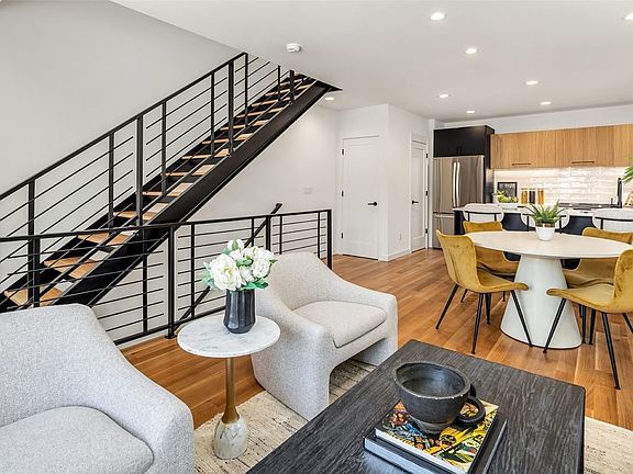 This 2025-built 3-bedroom, 1.75-bath townhome by Build Sound blends bold modern styling with natural warmth. Rich wood accents, custom steel stairs, and hand-selected designer lighting set the tone, while oversized windows flood the 1,492 sq ft layout with natural light. The large, open-concept living, dining, and kitchen area is designed for modern living and entertaining—complete with bar seating and a walk-in pantry. Upstairs, the primary suite retreat offers double closets, a dual-sink vanity, spa-style bath, and a private deck—perfect for your morning coffee. Top it all off with an expansive 400 sq ft rooftop deck showcasing stunning views of Mt. Rainier—the ideal backdrop for summer evenings under the stars. EV ready parking stall included.