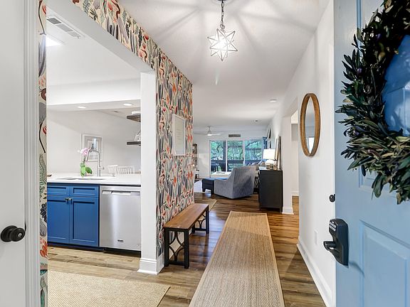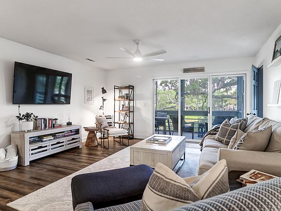 This beautifully renovated villa is known as the Heron's Nest because of a nest that was present in the great Live Oak tree outside the screened porch when the owners bought it. The recently renovated kitchen has new soft-close cabinets with quartz countertops, skinny subway tile backsplash and stainless appliances. This opens to the dining area with room for four barstools and a table for 6. The ample sized living area opens to the large screened porch with room for dining and sitting areas. With a view of the marsh and several Grand Oaks, this is a serene place for coffee in the morning or a glass of wine in the evening. There is also a sunroom (only one in the complex) which has access from the living room as well as the primary bedroom.The primary bedroom has a double closet, a lovely wallpapered feature wall, and a high quality memory foam mattress. The totally renovated en-suite bath has ceramic tile floor, new vanity with marble countertop and black fixtures, mirrors and light fixtures on a shiplap wall. The guest suite is large enough for bunk beds and a queen size bed (high quality memory foam mattress) and a stylish bath with quartz countertop, black fixtures and a black and white star-patterned ceramic tile floor. There are new doors and hardware as well as new light fixtures throughout. The laundry has new full sized front loading LG washer and dryer. Whether you're looking for a full time villa, vacation home or an investment property, this one checks all the boxes. Heron's Nest is being sold furnished with some exclusions. It has a great location within walking distance to pool, world class tennis facility and the Lakehouse fitness center with indoor pool for year round swimming. You can walk or ride your bike to many restaurants and shops at Bohicket Marina and Freshfields Village. Seabrook Island has two stunning golf courses, multiple clubhouses and restaurant options.