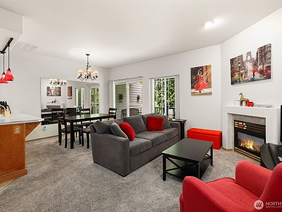 Over 1,600 Sq Ft / Private End-Unit – Unmatched Value at This Price! 3bd/2.5ba townhome offers rare privacy, peaceful greenbelt outlooks, & 2 balconies. Stay comfy yr-round w/central A/C & cozy gas FP. Flexible floorplan features a MAIN FLOOR bedroom w/adjacent ¾ bath, ideal for guests, home office, or second primary. Upstairs, two oversized bedrooms boast walk-in closets, incl the primary suite. Enjoy a gas range; nearly all major appliances have been upgraded. Major updates since 2021 incl newer HVAC, roof, & carpet. 2 parking spaces:garage + driveway. Fantastic location: minutes to Sounder train & freeway access, & walking distance to the Farmer’s Market, South Hill Mall, Bradley Lake Park, the Fairgrounds, & summer concerts in the park.