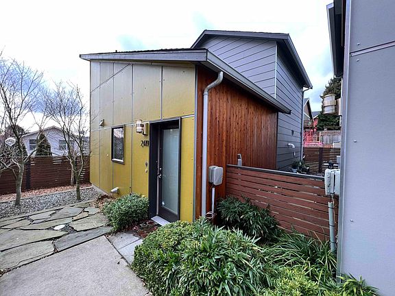 This detached home combines modern design with eco-conscious living. The open layout features radiant bamboo floors, vaulted ceilings, a loft-style primary suite with Mt. Rainier views and A/C, and a contemporary kitchen with stainless steel appliances.