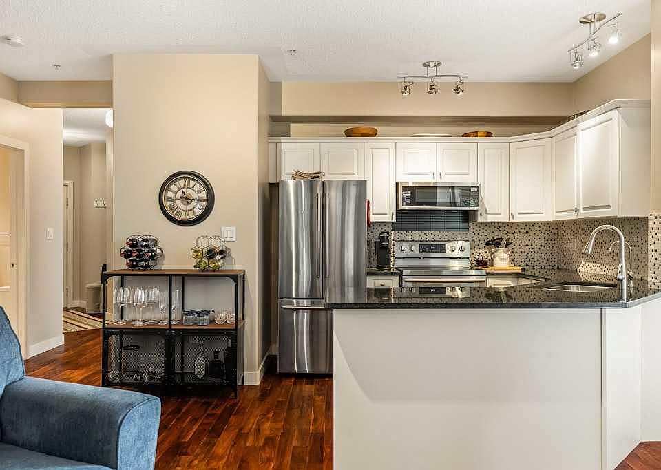 Flooded with natural light from its desirable SW corner, this 2 bedroom, 2 bath condo in the Waterford of Erlton offers both warmth & sophistication in a coveted inner-city setting. Rich hardwood floors flow throughout the main living areas, leading you into a spacious kitchen with granite countertops, upgraded stainless steel appliances, and timeless white cabinetry. The living room is anchored by a stone-faced gas fireplace, creating the perfect spot to relax through Calgary’s cooler seasons. Thoughtfully designed with privacy in mind, the layout separates the bedrooms: the primary suite boasts a walk-in closet, built-in shelving, and a relaxing ensuite with a soaking tub, while the secondary bedroom also features a walk-in closet and cheater access to its own full bath. Step outside to a large sunny balcony that overlooks the treelined courtyard - an ideal retreat for morning coffee or with a glass of wine in the evenings. Recent updates over the last two years add even more value, including fresh paint, updated light fixtures, new ceiling fans in the bedrooms, all new screens, a new screen door to the patio, and new blinds. The kitchen has been further enhanced with a new microwave and dishwasher, and the living room features a multidirectional TV mount. A rare perk for the building, the unit also includes an in-wall air conditioning system in the living room - perfect for Calgary’s warmer days. Lightly used (just 3-4 months a year), the condo shows beautifully and feels nearly new. Additional highlights include an owned underground heated parking stall, bike storage, and access to a convenient car wash & vacuum bay. The location is unbeatable—just steps to public transportation, incredible bike and walking paths, the Elbow River, Stampede Park, the MNP Community & Sport Centre, and the Roxboro/Erlton off-leash dog park. Rent a plot at the Erlton Community Garden and enjoy a short walk to the Mission district with its boutique shopping and exceptional eateries, or hop on your bike for a quick ride downtown and beyond.