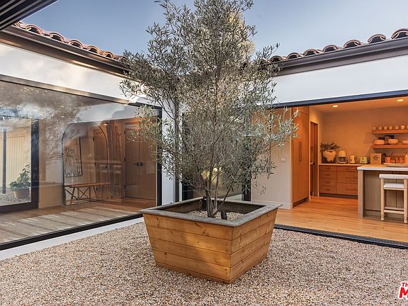 Set in the exclusive Westridge enclave of Mandeville Canyon, this reimagined 5-bedroom, 4-bathroom single-level home offers a rare blend of high design, natural beauty, and city convenience.Inspired by Scandinavian aesthetics, the home features white oak floors, custom oak cabinetry, limewashed walls, and natural textures throughout. At its center, an open-air courtyard with a mature olive tree brings in natural light and a sense of calm.The chef's kitchen pairs La Cornue and Thermador appliances with Dekton countertops, European hardware, and a walk-in pantry balancing function with refined style. Vaulted ceilings and expansive living areas create a seamless, sunlit flow.The primary suite offers a private escape with a spa-like bath, freestanding soaking tub, and dual vanities. Each additional bathroom has been thoughtfully updated with designer finishes. A flexible bonus room (currently used as a gym) and a whole-house water filtration system support wellness-focused living.With direct trail access to sweeping city and coastline views just minutes from Brentwood, the beach, and the Westside this is a rare opportunity to own a private, design-forward retreat in one of L.A.'s most sought-after canyon settings.