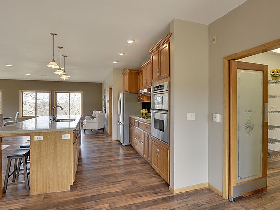 One of a kind custom built executive rambler on a 12 acre estate. Complete privacy is provided behind the fenced & gated hobby farm. Features open floor plan~perfect for entertaining, Corian countertops, stone fireplace, high end ss appliances, huge master suite w/walk in shower, maintenance free decks, heated attached 40x30 4 car garage, 96x40 outbuilding w/12' doors & cement floor, addl tuckunder garage w/horse stable. Finish the walk out lower level for even more living space!