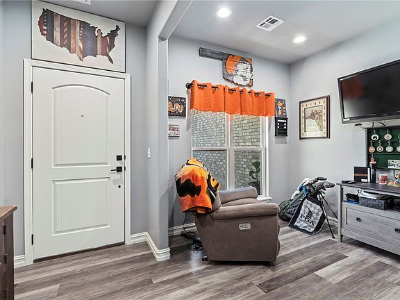 Welcome to Flint Ridge Gated Community! This Full-Brick Home is better-than-new with custom features to include gas fireplace, furnace automatically switches to gas emergency heat for heat pump in extreme cold temps, gas grill hookup on back porch, hot tub pad & panel, & a 50-amp service on house for shop or RV hookup. The aerobic sewer system serves to irrigate the beautiful sod lawn! Nice privacy floor plan offers open Living & Kitchen w/soft close cabinetry, refrigerator, range/convention oven w/air fryer & gas cooktop. 3 bdrm, 2 bath, plus an office/bonus room. Primary bedroom/bath tiled walk-in shower & walk-in closet, granite counters throughout the home. 4 TVs convey (3 in bdrm & 1 in office). Located in the heart of the Ozark foothills, pristine fishing on Upper Illinois River, where ATVs are a way of travel, community lakes and golf course in this 7,000-acre gated community with 24-hour security! Paved street and fiber optic! Easy access to Cherokee Turnpike to Tulsa and just 20 minutes to NW Arkansas.
