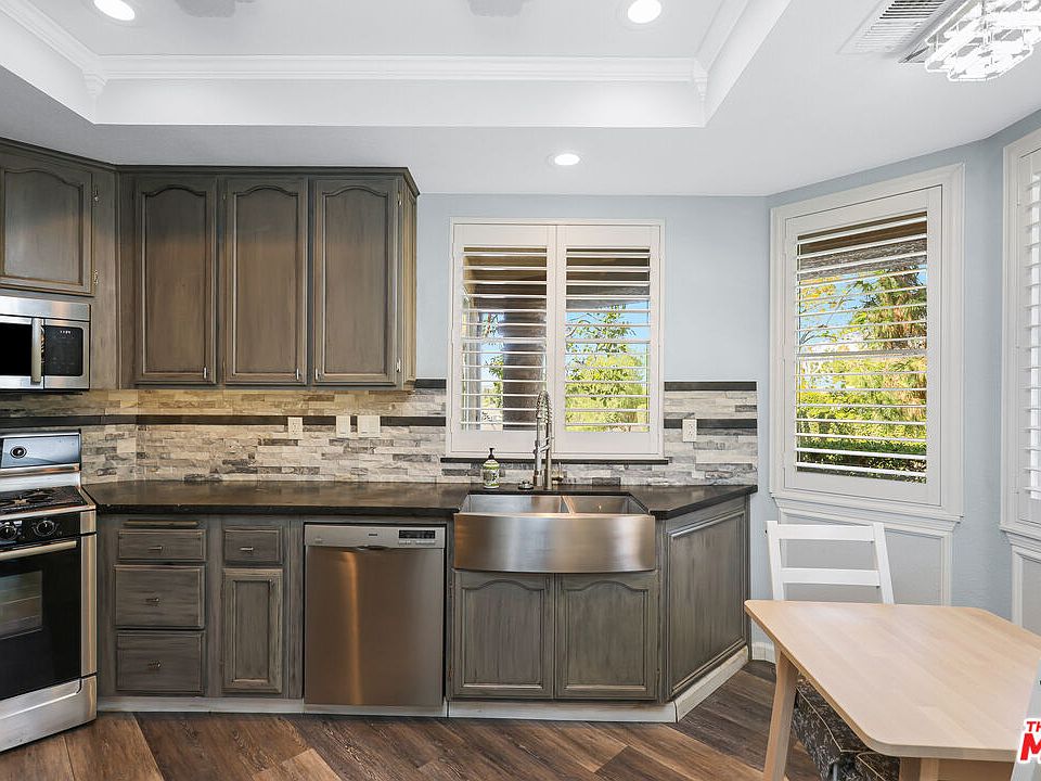 Corner unitPrivate balconyFarmhouse sinkAccess to the patioStainless steel appliancesDual sinks