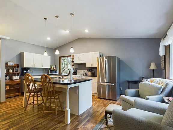 Welcome to this stunning single-story home, an orchestrator of both comfort and style, set amidst some of the most vibrant local amenities. This attractive home features a functional floor plan that flawlessly integrates a modern kitchen with a spacious living area. Additionally, this room is ideal for a cozy evening by the fire, thanks to the delightful living room's centerpiece—an exquisite fireplace. Step outside to enjoy the close amenities of the Village of Siren and the Crooked Lake Park - all within walking distance. Morning coffee on your front or back deck, plenty of storage space in the 2+ car detached garage, and many recent updates! Plus, the neighborhood offers great schooling opportunities at the nearby Siren School. And for those lazy nights when you don't feel like cooking, you'll appreciate the close proximity of the local restaurants. This residence is the perfect blend of space, style, and convenience you’ve been searching for!