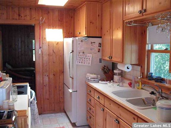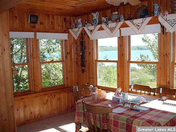 End of the road privacy in this home! Good fishing lake, remodeled in 2004 with custom cabinets, beautiful woodwork and large windows in living room overlooking the lake. 50 x 28 insulated heated garage, tar drive, and octagon screened in gazebo sits