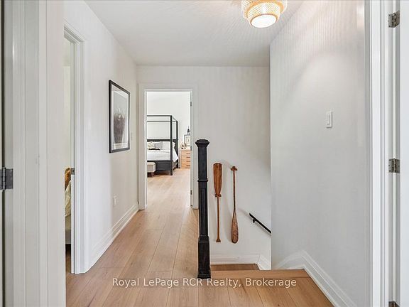 Tucked away on a quiet cul-de-sac in one of Owen Sounds most distinguished west side neighbourhoods, this exceptional 2-storey residence blends timeless sophistication with modern comfort, all set against the serene backdrop of a ravine. Every detail of this 5-bedroom, 3.5-bathroom home has been thoughtfully curated to offer both luxury and livability. The newly renovated kitchen is a showpiece, designed for those who appreciate style and function, with sleek finishes, generous workspace, and an effortless flow into the open-concept dining area. A gas fireplace adds warmth and ambiance, creating the perfect setting for gatherings both large and small. The bright front living room invites conversation, while the main floor den offers a peaceful retreat for reading or work. Upstairs, the primary suite is a true sanctuary. A striking picture window frames the treetops, filling the room with soft natural light. The vaulted ceiling adds architectural drama, while the impressive 13 x 8 walk-in closet and spa-inspired ensuite, featuring an oversized 8 x 4 shower, double sinks, and refined finishes, exude everyday indulgence. Three additional bedrooms and two full bathrooms, including another ensuite, complete the upper level. The fully finished lower level extends the homes versatility, offering a cozy family room with a second gas fireplace, a gym, an additional bedroom, laundry, and a bathroom. Outside, the private backyard is a tranquil escape, with raised flower beds and vegetable gardens set against the lush ravine, ideal for morning coffee or evening unwinding. Additional highlights include a heated double garage and brand-new ductless A/C unit for year-round comfort. Elegant, inviting, and impeccably maintained, this home is a rare offering in a coveted west side setting where luxury and nature live in perfect harmony.