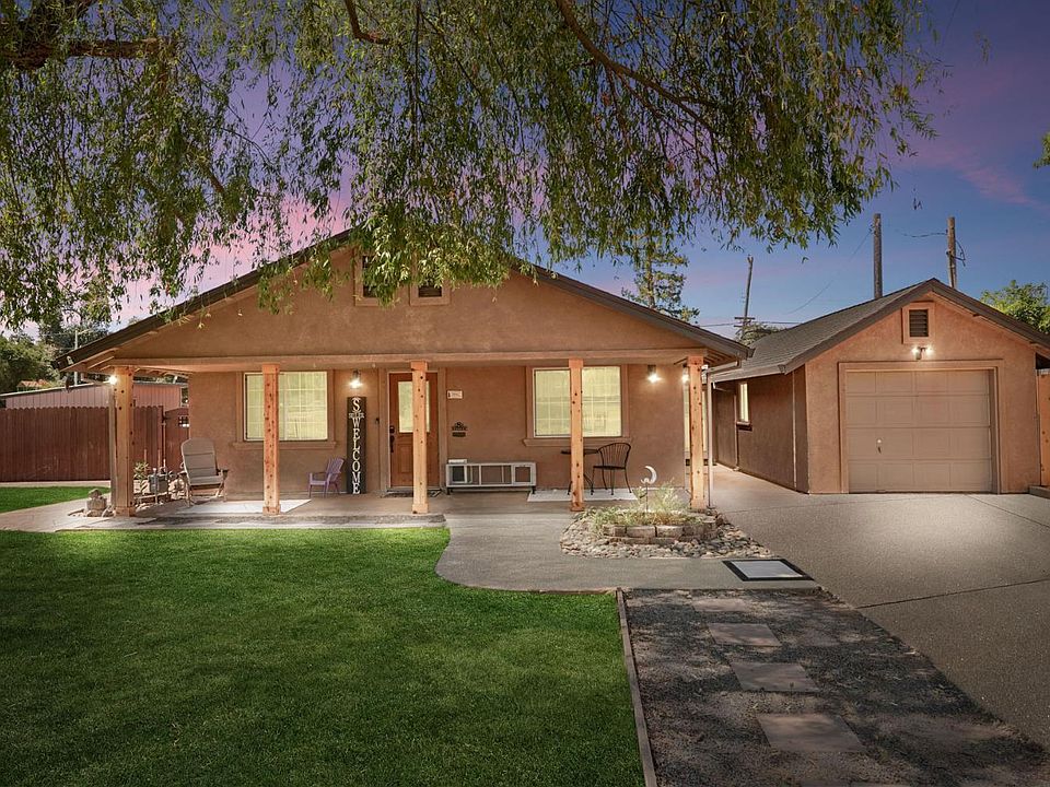 Welcome to the heart of Galt! Perfectly situated across the street from historic Old Town Galt, this updated home is steps from one-of-a-kind eateries including Brewsters, Coffee Shop Bakery, and Spaans Bakery. With recent investments from the City and local businesses, you'll enjoy community events such as Saturday Markets, Farm-to-Fork dinners, and Independence Day and Christmas parades. Set on a .26-acre lot with alley access, the property offers excellent potential for an ADU with its own private entrance. The home includes three bedrooms, two bathrooms, plus a connected in-law suite with its own living area and bedroom ideal for extended family or guests. Inside, the home has new luxury vinyl plank flooring, fresh interior paint, and remodeled bathrooms with updated toilets, sinks, and vanities. Comfort is ensured with a new HVAC system with extra return and a brand-new roof. Energy-efficient upgrades include new attic insulation, LED lighting, and weather stripping. Sewer improvements include a permitted line already stubbed for a future ADU. Outdoor features include a sparkling pool that was recently replastered, new fencing, and a freshly installed driveway gate. With thoughtful updates, a versatile floor plan, and prime location, this property is ready for YOU!