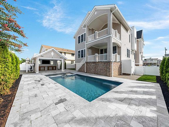 Public Open House - Saturday, July 5th 10AM-1PM. Welcome to 242 83rd Street, a stunning new construction home, offering an unparalleled blend of luxury and design in the heart of Stone Harbor, NJ. This expansive estate, sitting on an oversized 62.5x110’ lot, boasts 3,500 square feet of living space—25% larger than typical homes in the area. With six spacious bedrooms, six full baths, and two powder rooms, this home is designed for ultimate comfort and style. Designed with one-of-a-kind architecture by the Hyland Group and interior design and high-end furnishings by Proximity Interiors, this home offers every modern amenity you could desire while keeping the timeless, classic beach house aesthetic. As you enter the home, you’re greeted by a beautiful bluestone patio that leads you inside to the first floor. Here, you’ll find five private ensuite bedrooms, each featuring designer-selected tiled bathrooms. The oversized family room, located at the rear of the home, offers access to a covered porch overlooking the custom 12x20 gunite pool and fully loaded cabana. A convenient walk-in laundry room and powder room for pool access complete the first floor. The second floor opens up to a breathtaking 35-foot wide living space with cathedral ceilings and exposed beams, creating an airy and expansive atmosphere. The chef's kitchen is a culinary dream, with a 10-foot island, ample seating, and top-of-the-line appliances. Behind the kitchen, a spacious butler's pantry provides an excellent prep space and extra storage. The luxurious primary suite with a private covered deck overlooking the pool complete this level. The primary suite features a massive his-and-her walk-in closet with a stacked washer and dryer and a luxurious ensuite bath with a dual vanity. The third story is the crown jewel of the home, featuring a 359-square-foot rooftop deck with a built-in wet bar, fireplace, and panoramic ocean views, making it the perfect spot for entertaining or relaxing while enjoying breathtaking sunsets. This home also offers a prime location, just 2 blocks from the guarded 83rd Street beach and within walking distance of a variety of dining and entertainment options. Enjoy local favorites such as Windrift, Icona Brew Pub, Mack's Pizza, Back Bay Seafood, and more. Nearby recreational amenities include the 82nd Street tennis courts, Pickleball courts, and the public 83rd Street fishing pier, offering stunning views of Stone Harbor’s sunsets. Additional features of this home include elegant architectural details, maibec cedar siding, engineered hardwood floors, crown molding, specialty trim, multi-zone HVAC, 3-Stop elevator for easy access, and ample storage underneath the home along with plenty of off-street parking. This exceptional residence combines luxury, functionality, and location, offering a rare opportunity to experience the best that Stone Harbor has to offer.