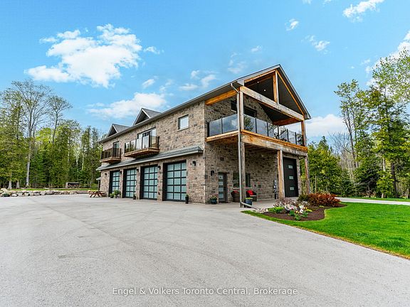 Unique Barndominium Living at 242 Balmy Beach Road, Owen Sound! Discover the exceptional lifestyle offered by this one-of-a-kind Barndominium nestled on a sprawling 2.72-acre property at 242 Balmy Beach Road. This magnificent home seamlessly blends expansive garage space with comfortable and stylish living quarters. The ground level is a dream for hobbyists and adventurers alike, boasting an impressive 4-car bay garage plus an additional full 16ft height garage perfect for storing your RV, boat, or other large toys! The main garage area features a durable epoxy floor, low-maintenance Trusscore walls, a convenient bar area, 3pc bathroom and separate heating/cooling control. Accessibility is key with a built-in elevator providing easy access to the second level. Ascend to the beautifully finished upper level, offering approximately 1650 square feet of living space. Here you'll find 3 spacious bedrooms and 2 well-appointed bathrooms. The serene primary bedroom features a private 3-piece ensuite and a charming Juliette balcony. The bright and airy living room also enjoys its own Juliette balcony, perfect for enjoying the fresh air.The heart of the home is the open-concept kitchen, dining, and living area. The modern kitchen is highlighted by an oversized island with stunning quartz countertops, providing ample workspace and a gathering spot for family and friends. Enjoy outdoor living on the covered front deck, where you can catch sunrises and also glimpses of beautiful Georgian Bay. The expansive 2.72-acre yard offers plenty of room to roam, featuring a huge asphalt driveway and a relaxing covered hot tub. Explore the wooded area for a touch of nature right in your backyard. This property truly offers the best of both worlds incredible garage and workshop space combined with comfortable and stylish living in a fantastic location. Don't miss your chance to own this unique gem!