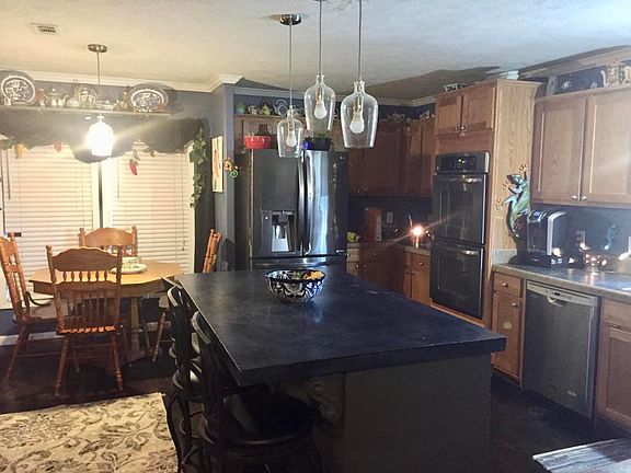Country living at it's best! Once you step inside you will not know you are in a mobile home. Complete with sheetrock walls, hardwood floors and huge kitchen island with concrete countertop. This spacious home has 4 bedrooms with one being a master suite, 3 full bathrooms and an eat in kitchen. The exterior is completely encased in brick supported by a slab foundation. Unwind in the above ground pool or just relax on the back patio or front porch. Double fenced for your pets. Make your appointment today to view.