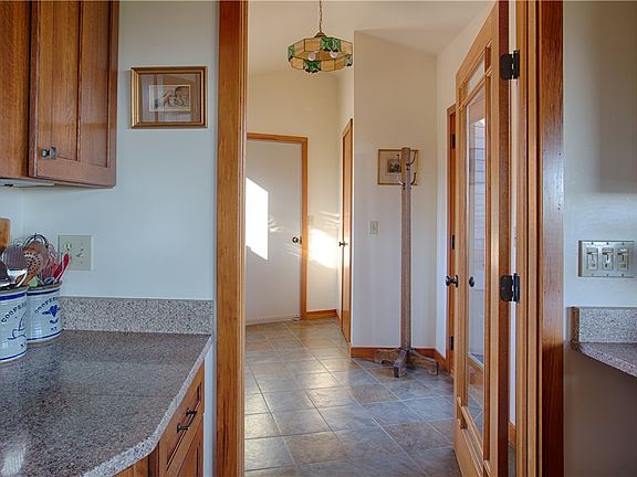 Set well back from the road and surrounded by over 35 acres of fields and woodland, this 3,600+ sq ft cedar home feels substantial and grounded—thoughtfully sited to capture long-distance views and a quiet connection to nature. A continuous expanse of south-facing windows floods the living space with natural light and frames the landscape throughout the day.