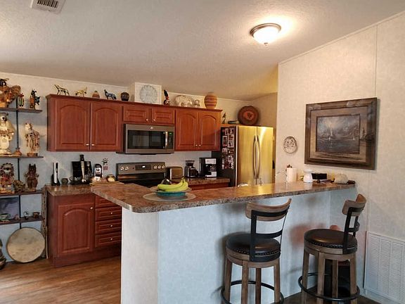 This perfect like new starter home is a charmer and located in a very convenient location in Freeport. Within mins of Freeport City Pool. Close to Elementary, Middle and High Schools. No HOA, low taxes, over 1 acre, partially fenced with a carport and out building. A spacious and updated 2018 Model manufactured home with newer upgraded appliances. Furnishings are negotiable. This home is a must see!