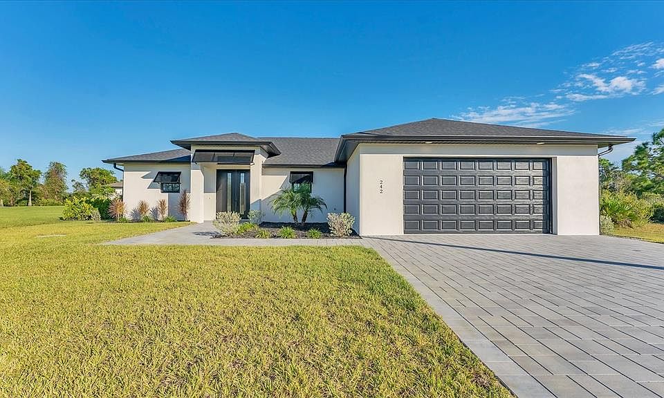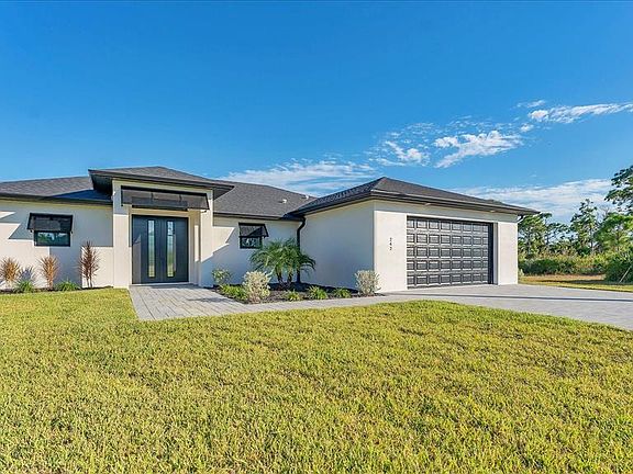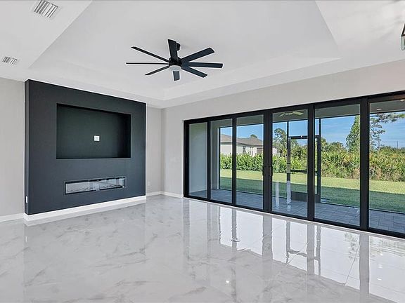 Why wait to build when this stunning, move-in-ready new construction is complete and loaded with upgrades? The Alyssa Model (1668) by Warren Hope Builders showcases exceptional craftsmanship, elegant design, and thoughtful attention to detail throughout. Step through the impressive 8-foot double entry doors into an open-concept living area featuring 6-panel center-lock sliders, a built-in electric fireplace with TV niche, and soaring ceilings that create a bright, airy feel. The chef’s kitchen is a showstopper with quartz countertops, a farmhouse sink, soft-close cabinetry, and a large island offering extra storage, electrical outlets, and seating — all complemented by brand-new LG stainless steel appliances. The owner’s suite provides a private retreat with French doors to the lanai, a walk-in closet plus an additional closet, and a luxurious spa-style bathroom featuring a large walk-in shower with built-in seat, jumbo rain head, ceiling-to-floor tile, and a private water closet. An oversized 23x23 garage adds an extra 100 square feet — perfect for hobbies or storage — and includes a utility sink and 8-foot garage door. The indoor laundry room comes complete with front-loading washer and dryer and a wash tub for added convenience. Enjoy paver lanai areas, lush landscaping, and room for a pool, plus modern energy-saving features such as foam insulation to keep your power bills low and an irrigation system with its own well to maintain a green, healthy lawn. The whole-house gutters and oversized paver driveway provide the finishing touches to this exceptional home. This 3-bedroom, 2-bath residence offers 8-foot interior doors, quality finishes, and a design that blends luxury with everyday comfort. Don’t wait to build — your new Florida dream home is ready for you today!