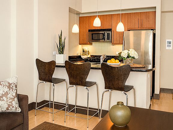Floor-to-ceiling windowsPrivate washer and dryerOpen airy layoutStainless steel appliancesExpansive walk-in closetStunning alcove studioBeautiful common roof deck
