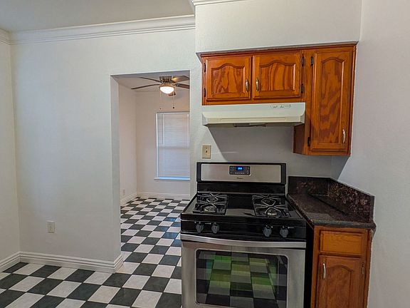 Inside, the home features a bright layout with a mix of vinyl and tile flooring for easy maintenance, plus ceiling fans and a gas wall heater for year-round comfort. The kitchen comes equipped with a gas stove and oven, range hood, and garbage disposal, making everyday cooking simple. The bathroom includes a tub/shower combo, offering both convenience and comfort.