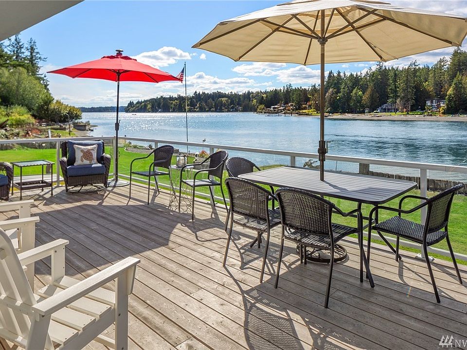 Open and Bright Beach House, located on Charming Stretch Island! Grapeview/South Sound Saltwater frontage & shellfish. Bedrooms and baths on both levels, ample closets and storage. Updated Kitchen and baths, floors, windows, electrical. Beautiful deck and yards for playing. Kayak and toy covered storage near the shore for easy access water fun! Nearby Fair Harbor boat launch & Moorage. Jarrels cove within short boat ride. Beautiful sunsets, western exposure, quiet dead end street. Outbuildings.